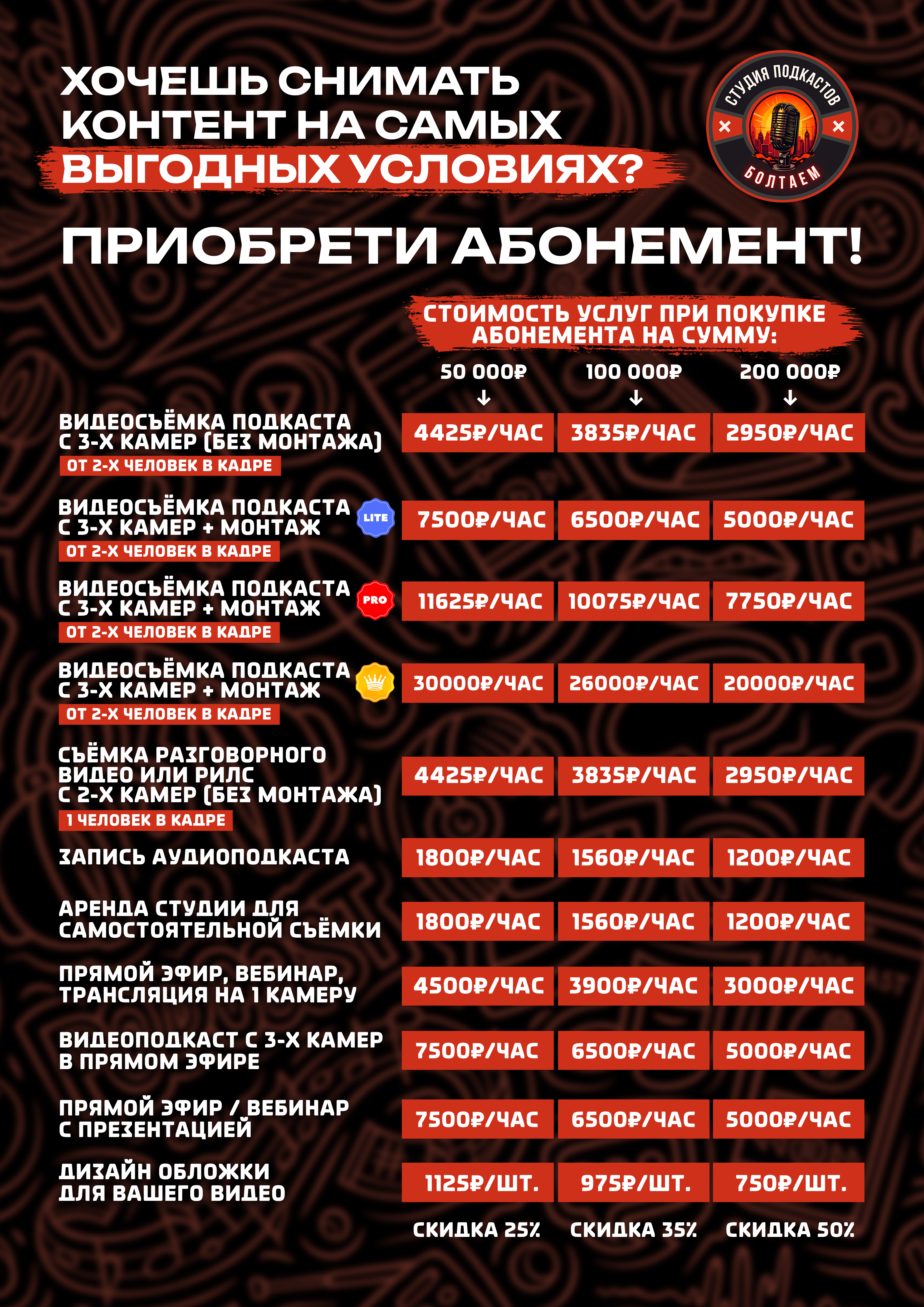 Мы записываем звук на студийные микрофоны SHURE SM7B. Данные микрофоны являются признанным стандартом качества среди студий подкастов, радиостанций и телестудий. Самые топовые известные подкастеры записывают звук на SHURE SM7B. Используем профессиональный аудиорекордер ZOOM H6, который позволяет записать каждого из спикеров, сохраняя каждую из дорожек в отдельный файл. Имеется гибкая регулировка громкости каждого спикера. В итоге записи получаем несжатый WAV-файл с характеристиками 48 кГц / 24 бит